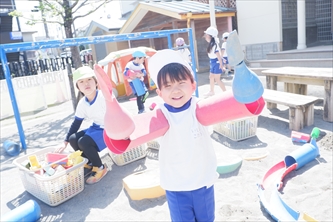 みのり認定こども園では、私学としての特質を十分に生かし、文部科学省基準(健康、人間関係、環境、言葉、表現)に準拠して、総合的にかたよりのない充実した保育を行っています