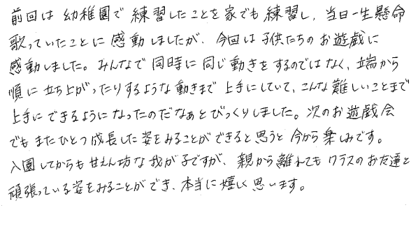 子どもの成長に対する保護者の声