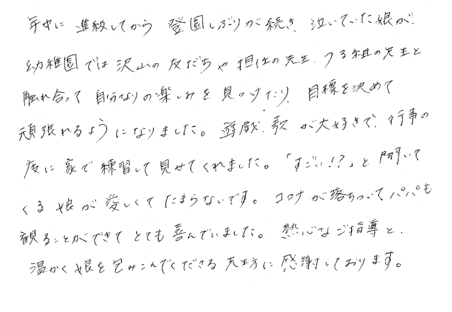 子どもの成長に対する保護者の声