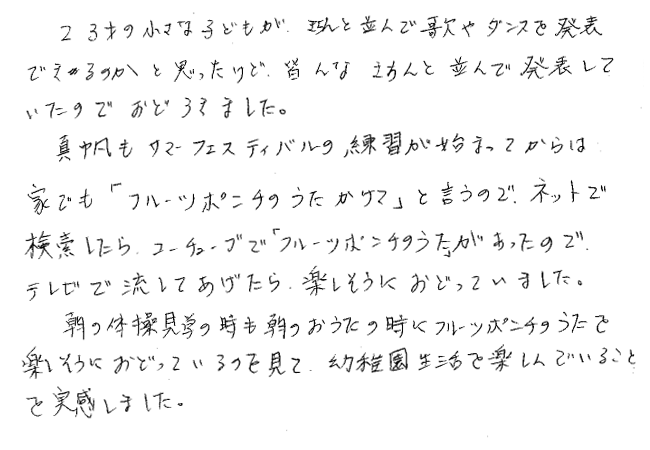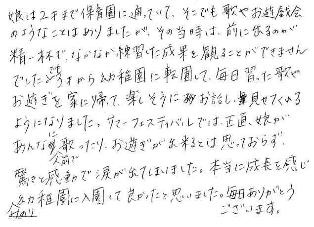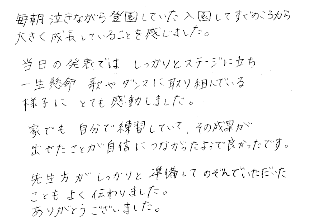 子どもの成長に対する保護者の声
