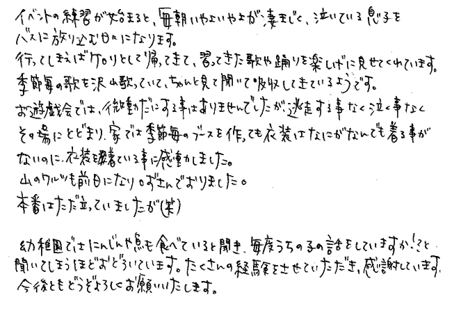 子どもの成長に対する保護者の声